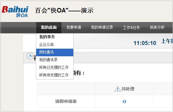 2. 您将看到OA在线即时通讯的界面。如下图: