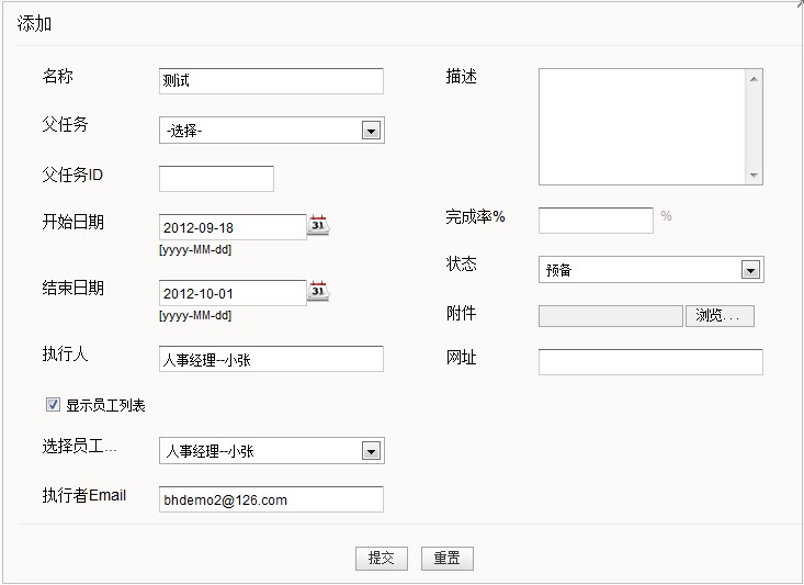 ·执行人默认为空,请在“显示员工列表”前面打勾,并选择员工。执行人将自动填充。