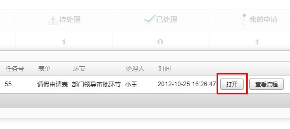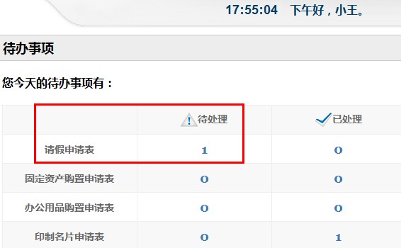 2. 或者在OA首页,您会看到“请假申请表”有一个未处理的事项。