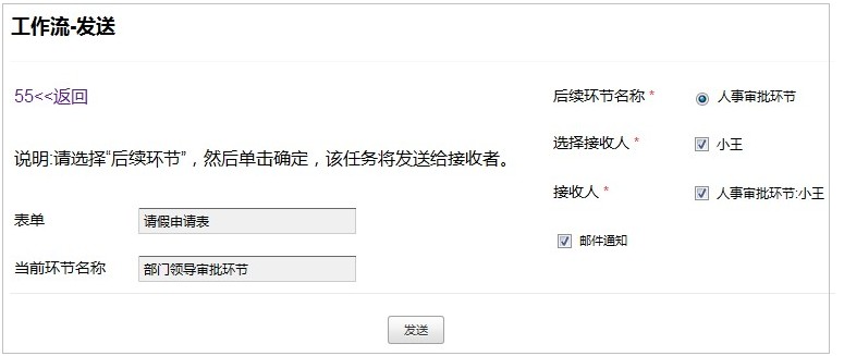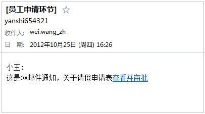 1. 员工提交表单申请后,相关的经理会收到一封邮件。(经理收到的邮件提醒内容可以进行定制)