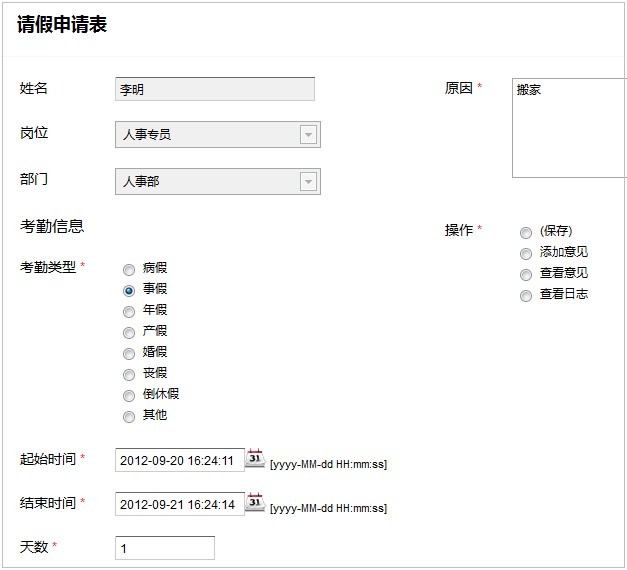 3. 之后,将跳转到审批页面。审批页面将显示员工申请表的全部内容。如下图:
